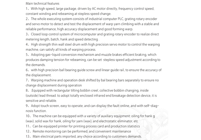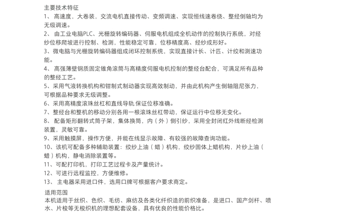 LD236T型高速分条整经机(MAIN TECHNICAL PARAMETERS)